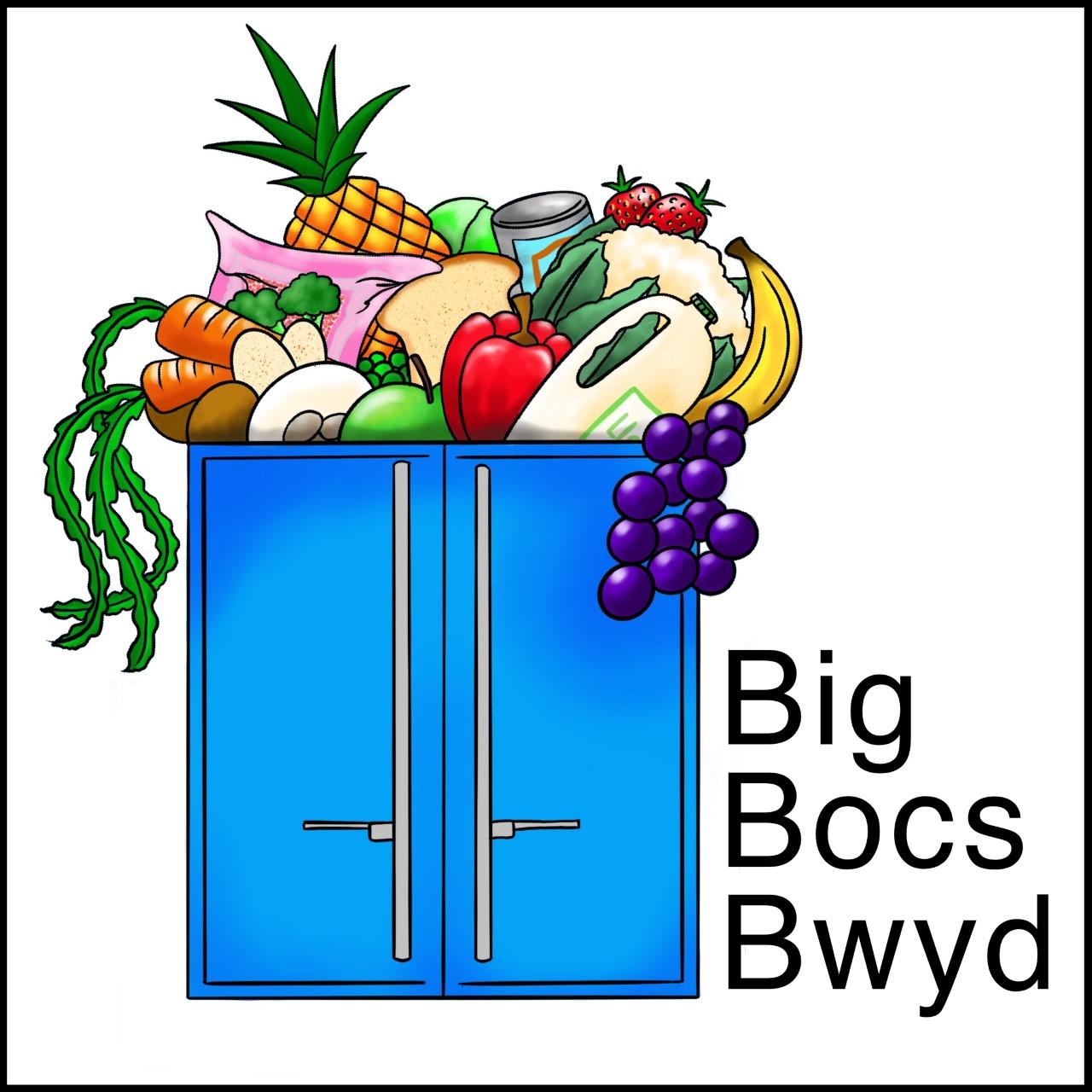 Please bring your own carrier bags. Reuseable hessian bags can be bought for £2 in The Big Bocs Bwyd.