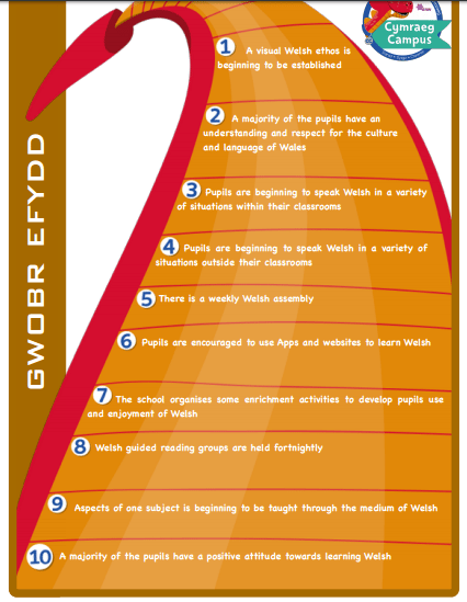 We are working towards achieving our Bronze Cymraeg Campus Language Charter Award. This will involve us completing 10 targets which our Criw Cymraeg are currently working towards.